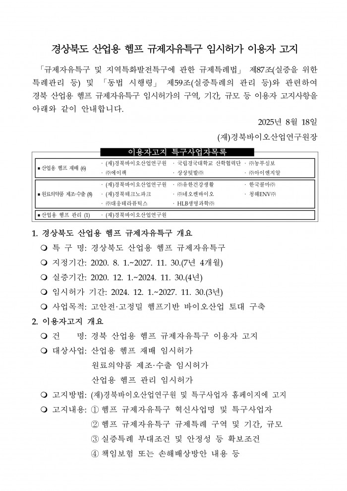 붙임. 경북산업용헴프 규제자유특구 이용자 고지(임시허가).pdf