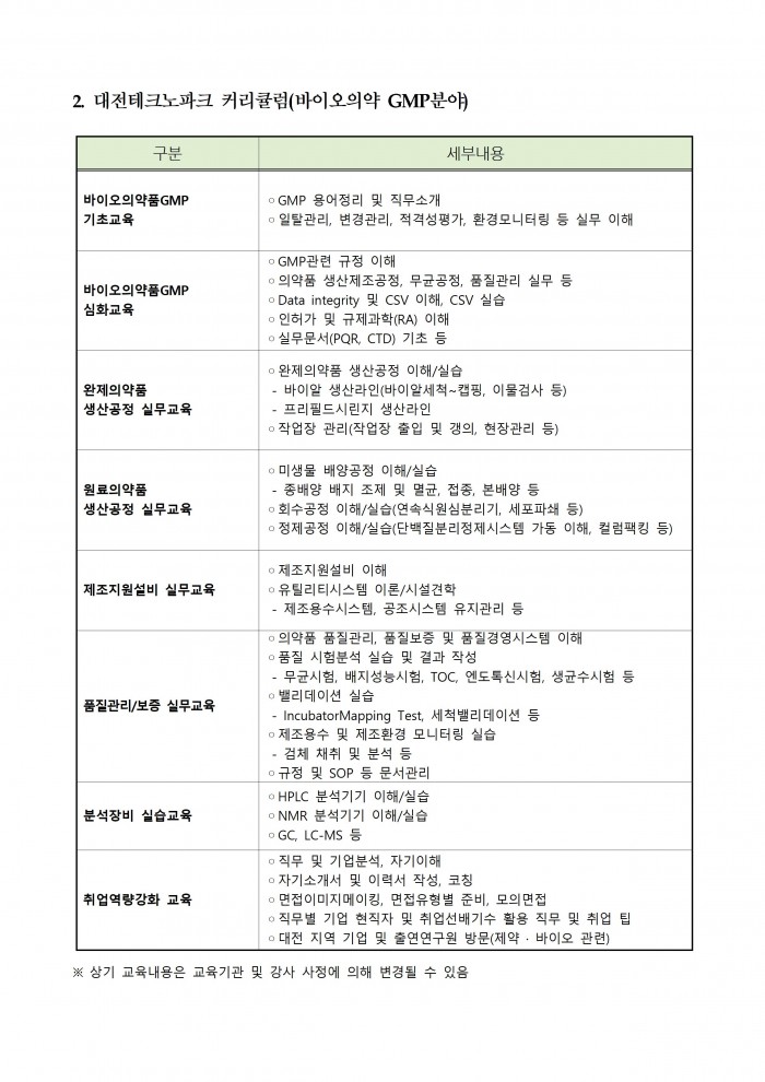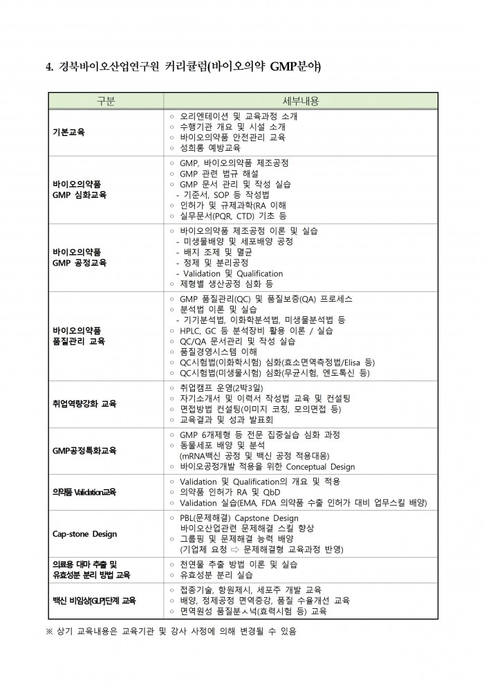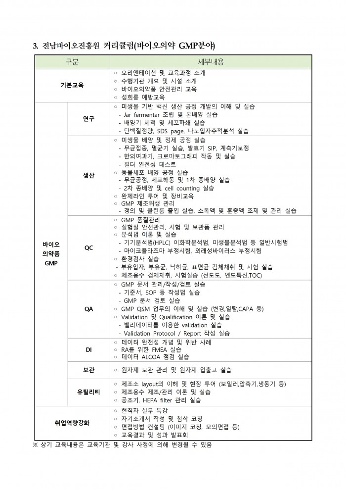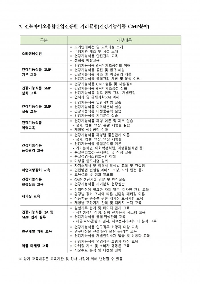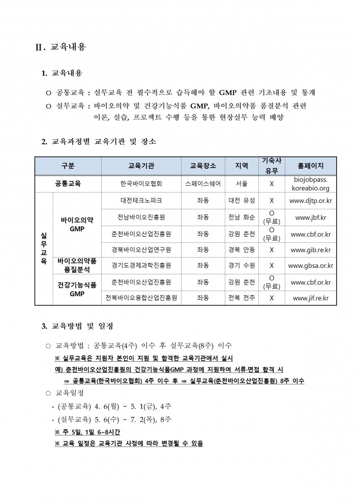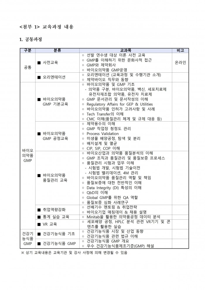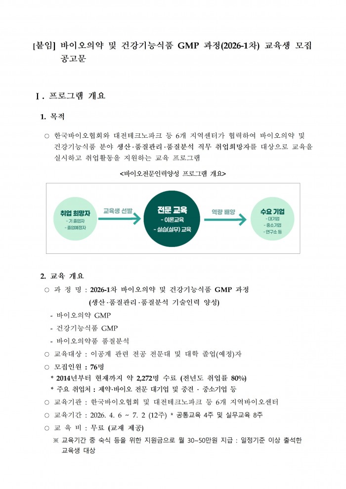 2026-1차 바이오의약 및 건강기능식품 GMP과정 교육생 모집 공고문