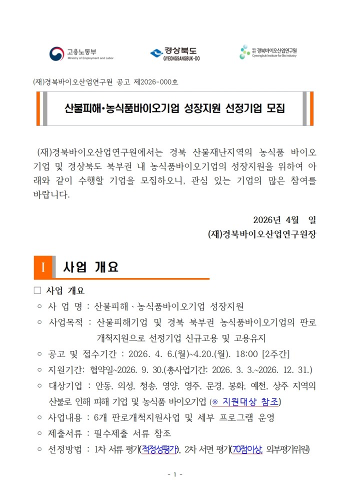붙임 1. 산불피해, 농식품바이오기업 성장지원 수혜기업모집 공고문.hwp