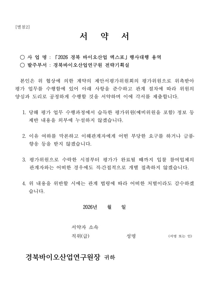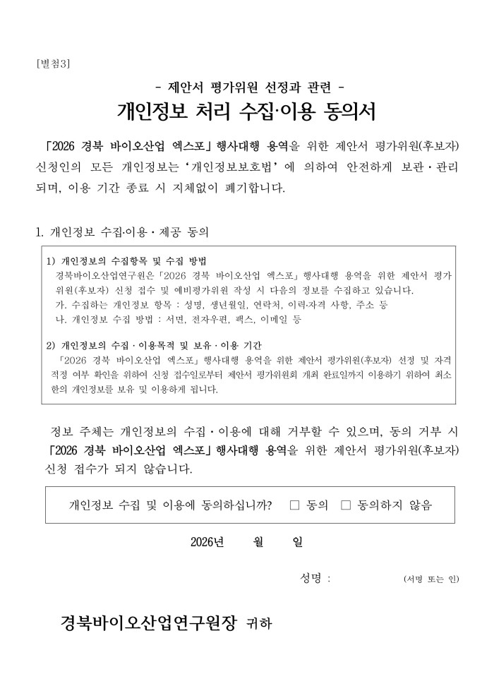 [별첨]2026 경북 바이오산업 엑스포 행사대행 용역 제안서 평가위원(후보자) 공개모집 서류.hwp