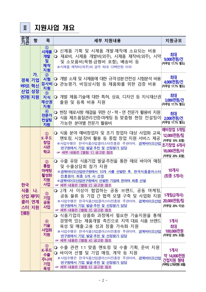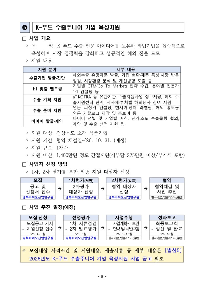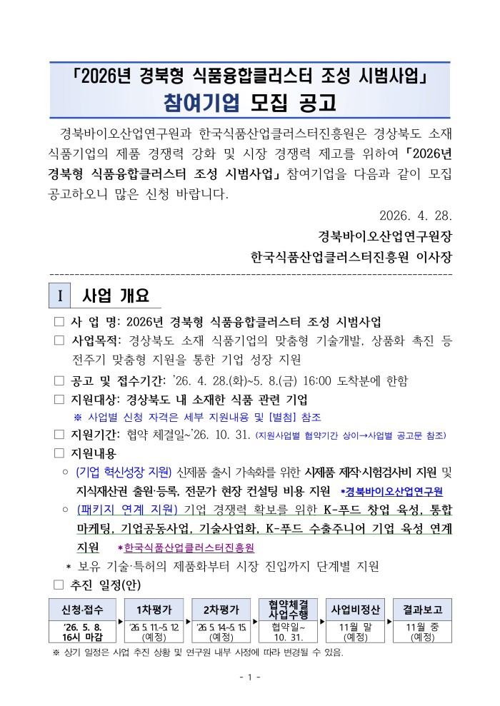 「2026년 경북형 식품융합클러스터 조성 시범사업」참여기업 모집 공고