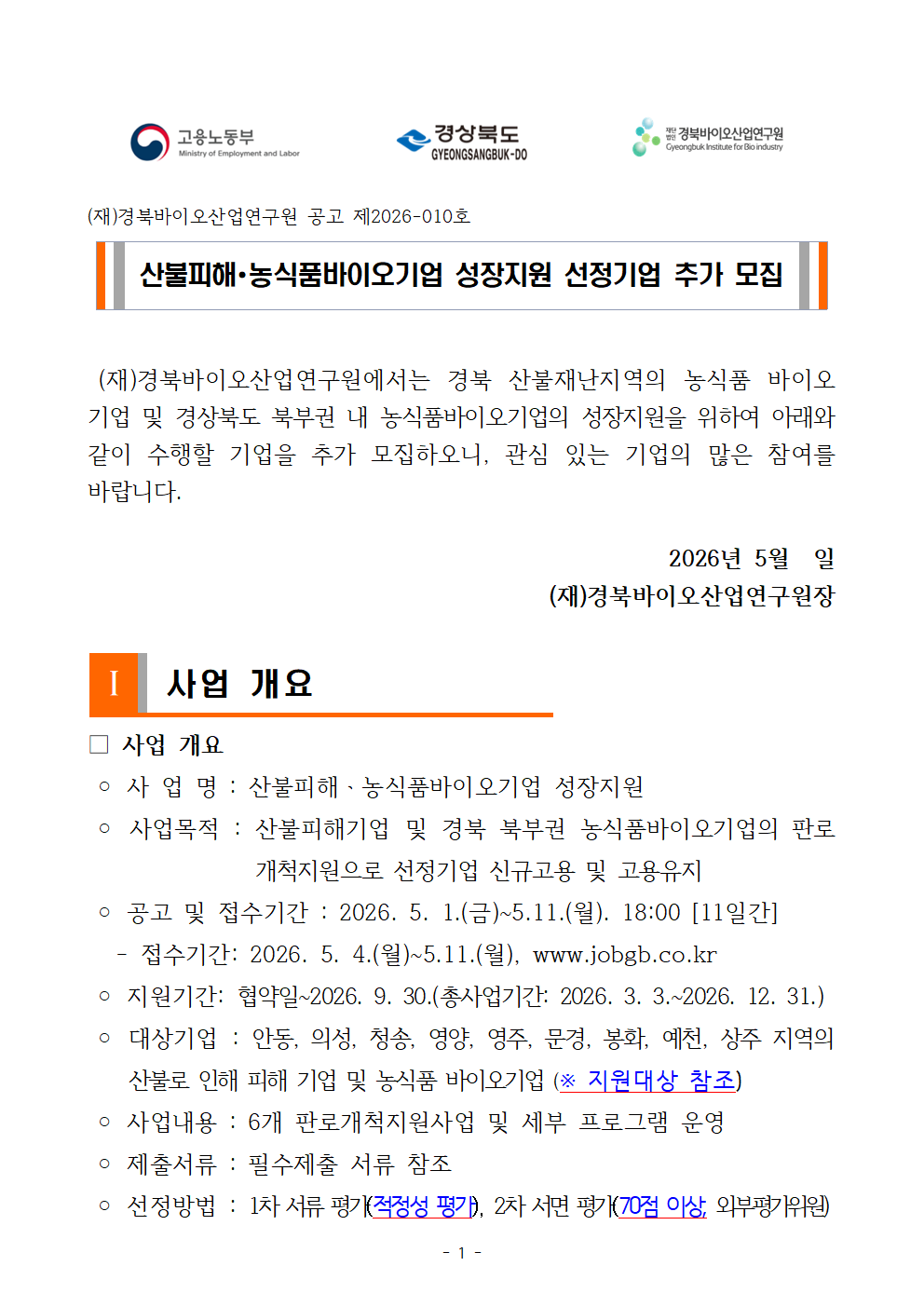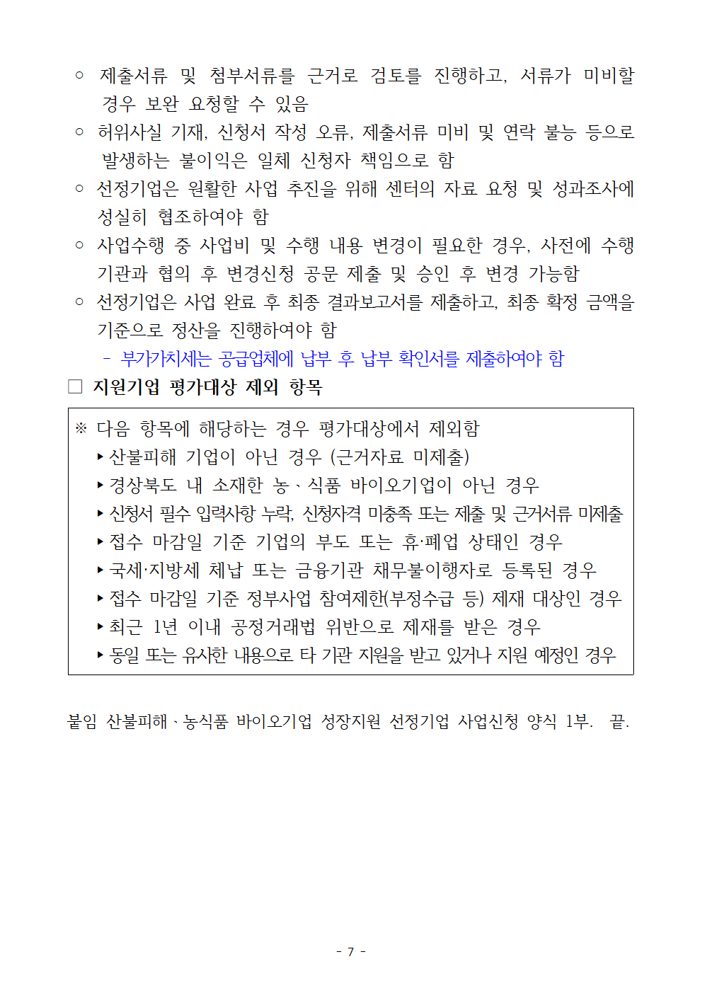 붙임 1. 산불피해 농식품 바이오 기업 성장지원 기업(추가)모집 공고문.hwp
