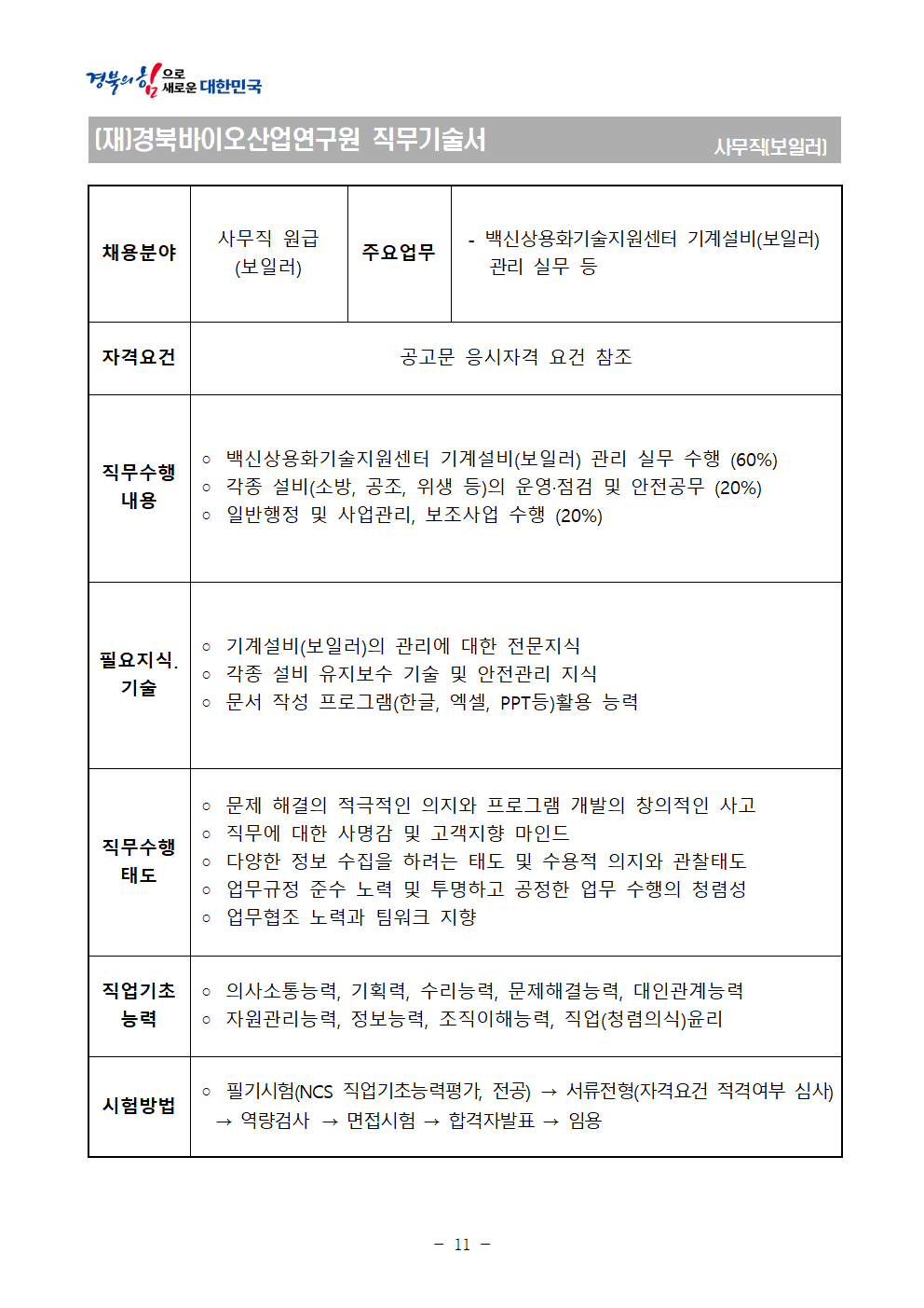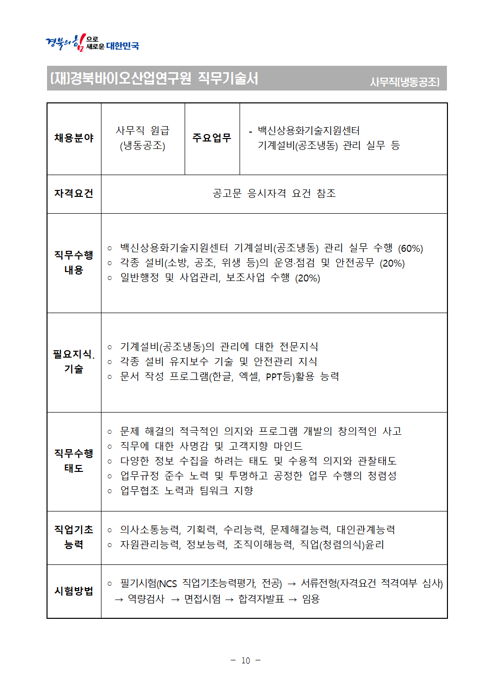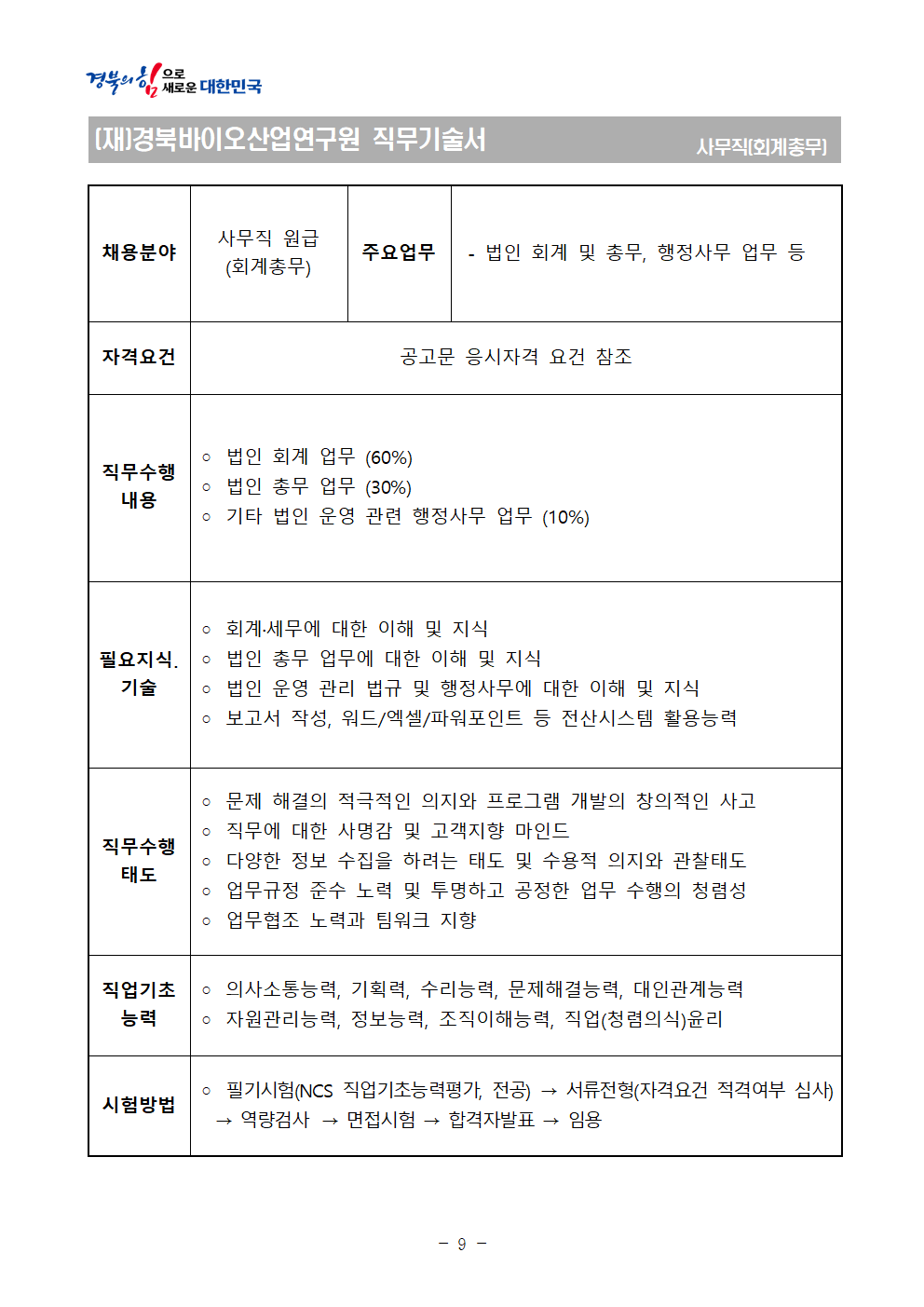 2026년 상반기 경북바이오산업연구원 통합채용 공고