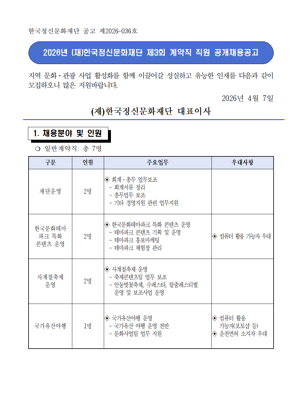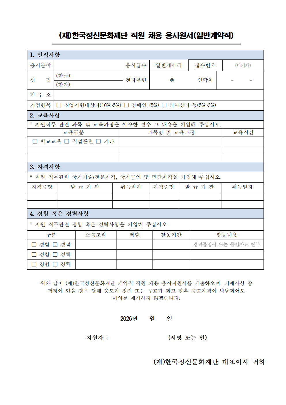 2026년 (재)한국정신문화재단 제3회 계약직 채용 공고