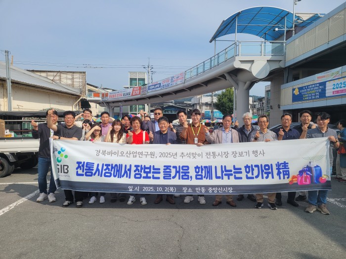 경북바이오산업연구원(이하 ‘연구원’)은 10월 2일 안동 중앙신시장에서 「추석맞이 전통시장 장보기 행사」를 열고 임직원들과 함께 제수용품 등을 구입하며 지역 소상공인과의 상생을 도모했다.